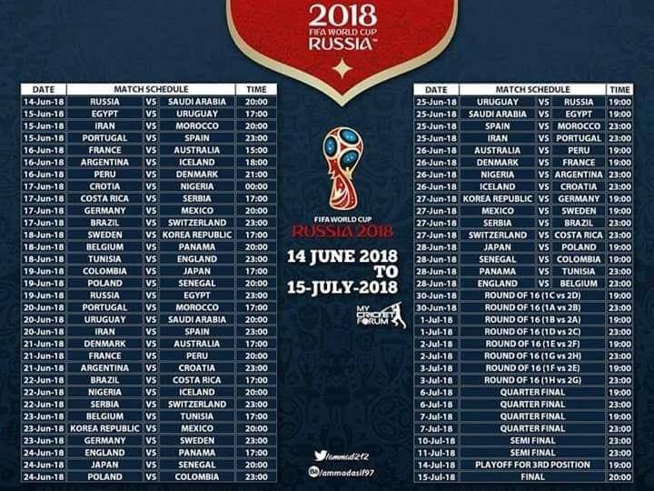 Football Fans: World Cup 2018 complete schedule from 14th June to 15th july